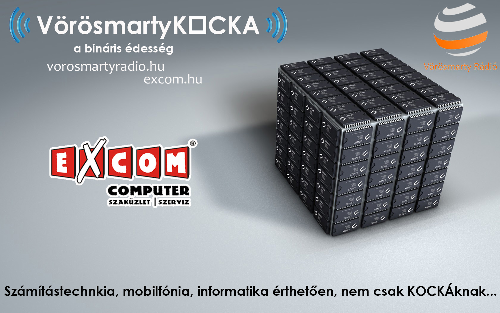 Érdekel az informatika, de nem értesz hozzá? Kérdeznél, de nincs kitől? Akkor a VörösmartyKOCKA a Te műsorod. Segítünk eligazodni az informatika, telefónia és a kütyük világában. Egy műsor nem csak KOCKAknak. Ha kérdésed van és segítségre lenne szükséged, vagy csak hozzá szólnál a témához, adás közben hívd a Vörösmarty Rádió stúdióját a (22) 311 511 telefonszámon, vagy adáson kívül keress minket közvetlenül az Excom elérhetőségein! A VörösmartyKOCKA napi aktuális témáit megtalálod Facebook oldalunkon, melyekről bővebben is olvashatsz honlapunk Hírek / Újdonságok rovatában.